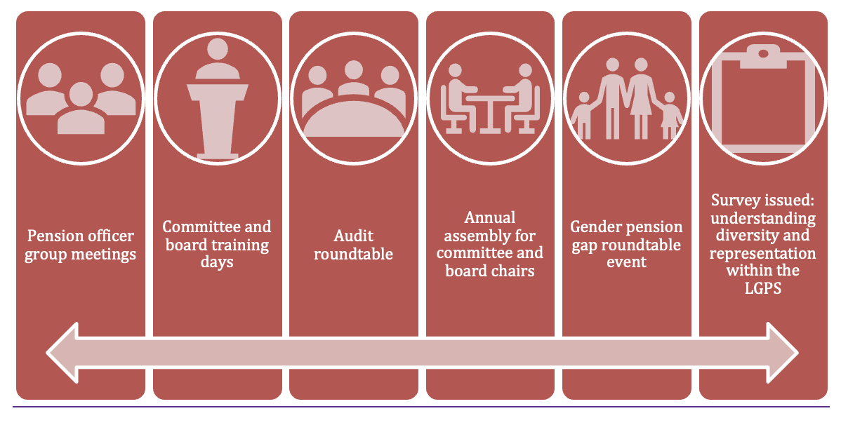 Key to the Board’s work is bringing together the different perspectives of all those involved in the LGPS. We do that through various means, as shown below: