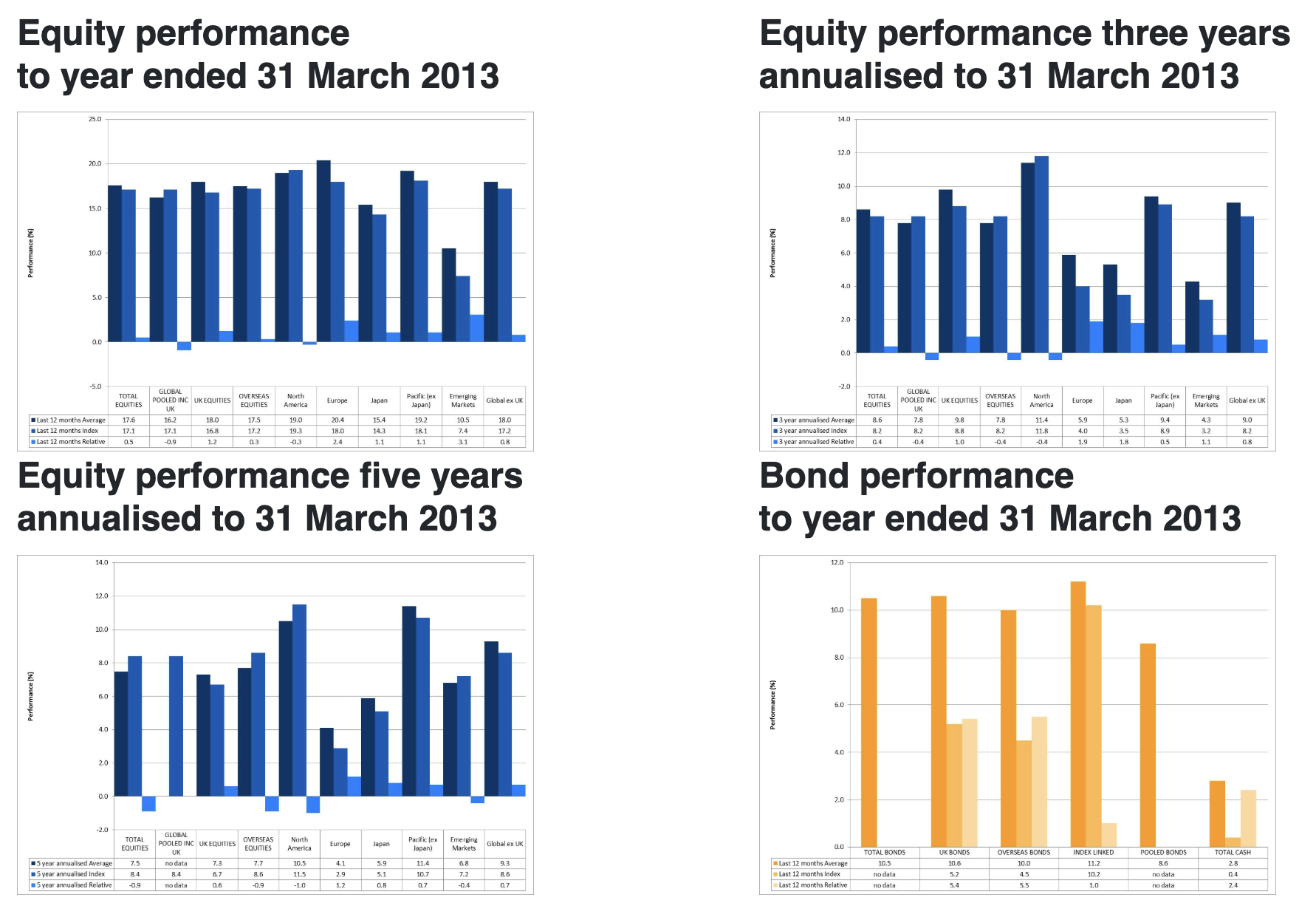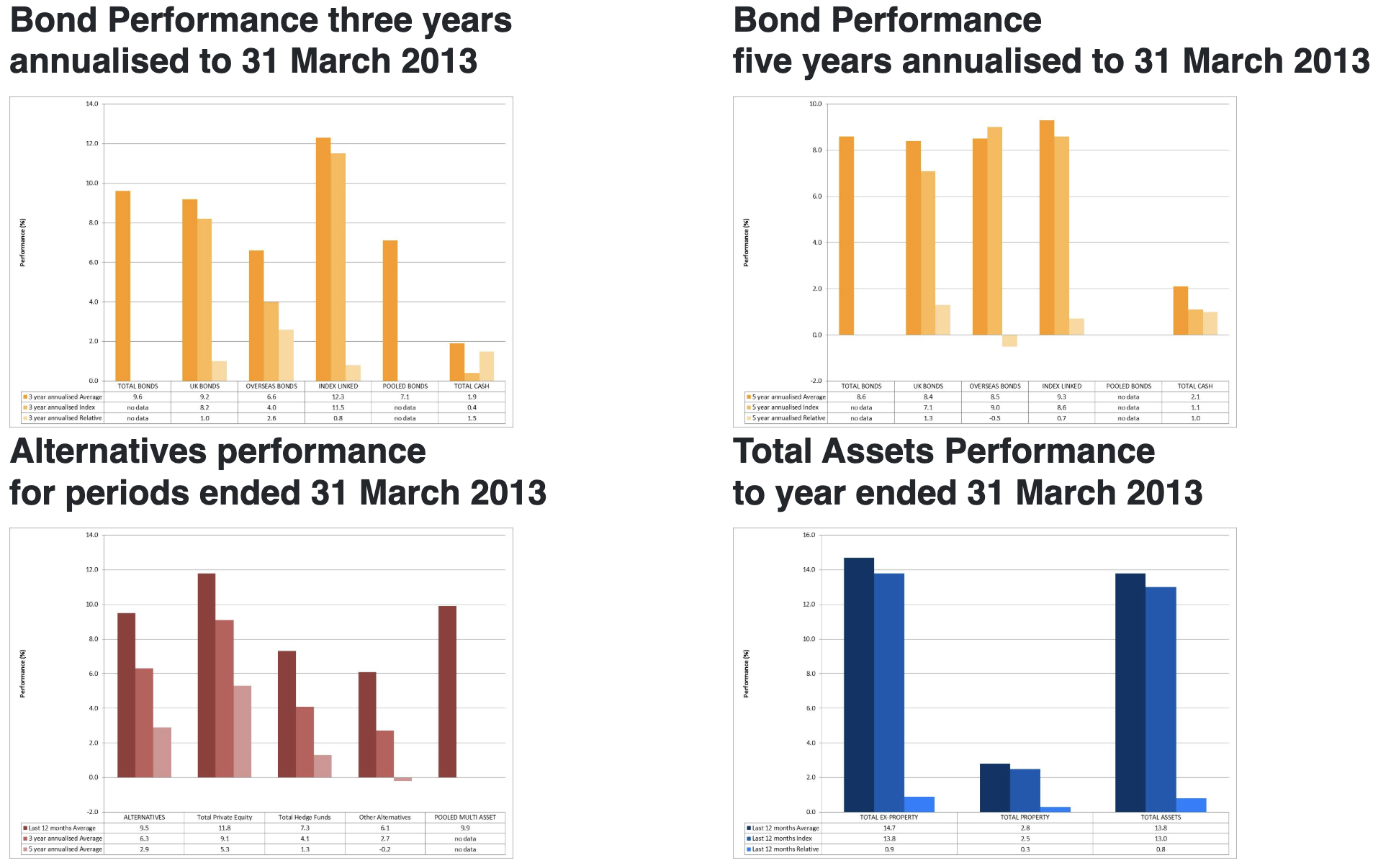 Note that the following summary is based on 85 funds with a total Market Value of £165,537m. The funds not included on this list are; Berkshire, Cheshire, City of Westminster, Durham, Greater Gwent (Torfaen), Hampshire, Hertfordshire, Kensington and Chelsea, Lambeth, Leicestershire, London Pensions Fund Authority, Shropshire and Tyne and Wear.