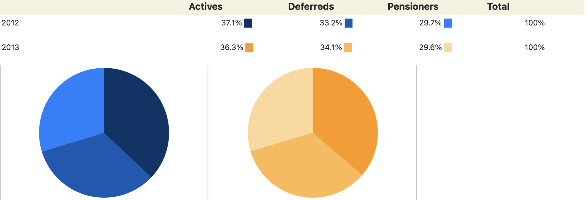 These figures may differ from employers listed in actuarial valuation reports, as inactive employers with no active or deferred pensioner members may or may not be included.