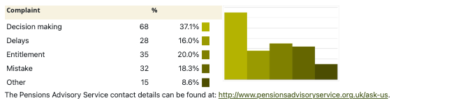 However based on reports from the Pension Advisory Service (TPAS) and the Pensions Ombudsman (PO) (see below) a small minority (0.01%) are recorded as making formal complaints about their pension benefits initially to TPAS and if they are still not satisfied to the PO. The vast majority of cases concern employer decisions about ill-health retirement and or calculation of ill health retirement benefits. This is in line with most other occupational pension schemes.