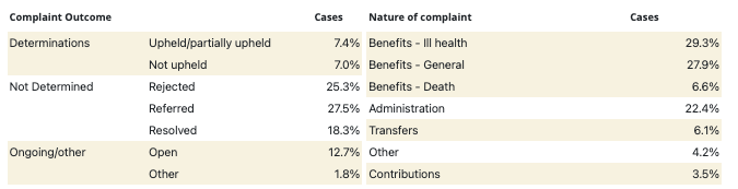 Someone’s entitlement, rights and options was the second most complained about issue. Errors made in benefit calculations, usually when working out quotations, but including some which led to overpayment of pensions and lump sums were the next highest cause of complaint.