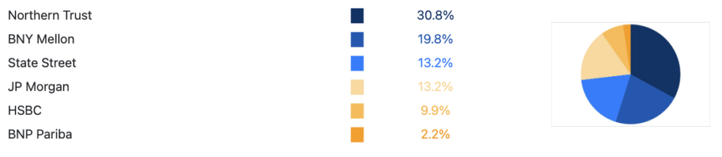 Asset custody* – BNY Mellon, BNP Paribas, HSBC, JP Morgan, Northern Trust and State Street.