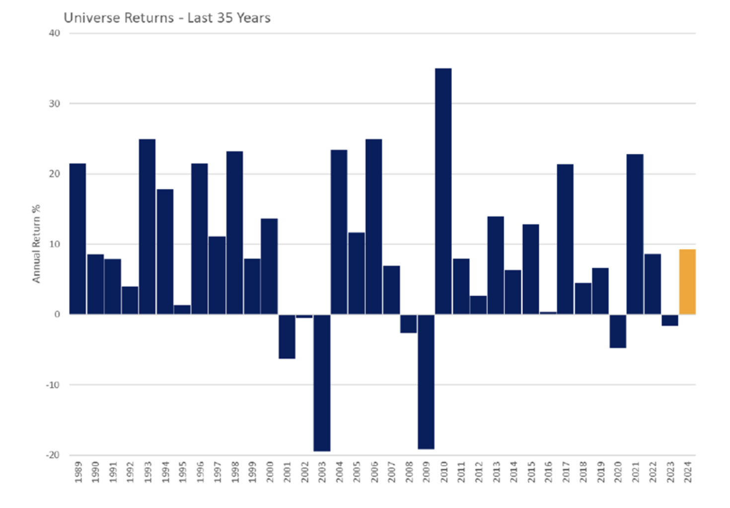 In recent years, returns have been very clearly impacted by global political and economic factors and so are not delivered consistently. The below graph has been provided by PIRC: