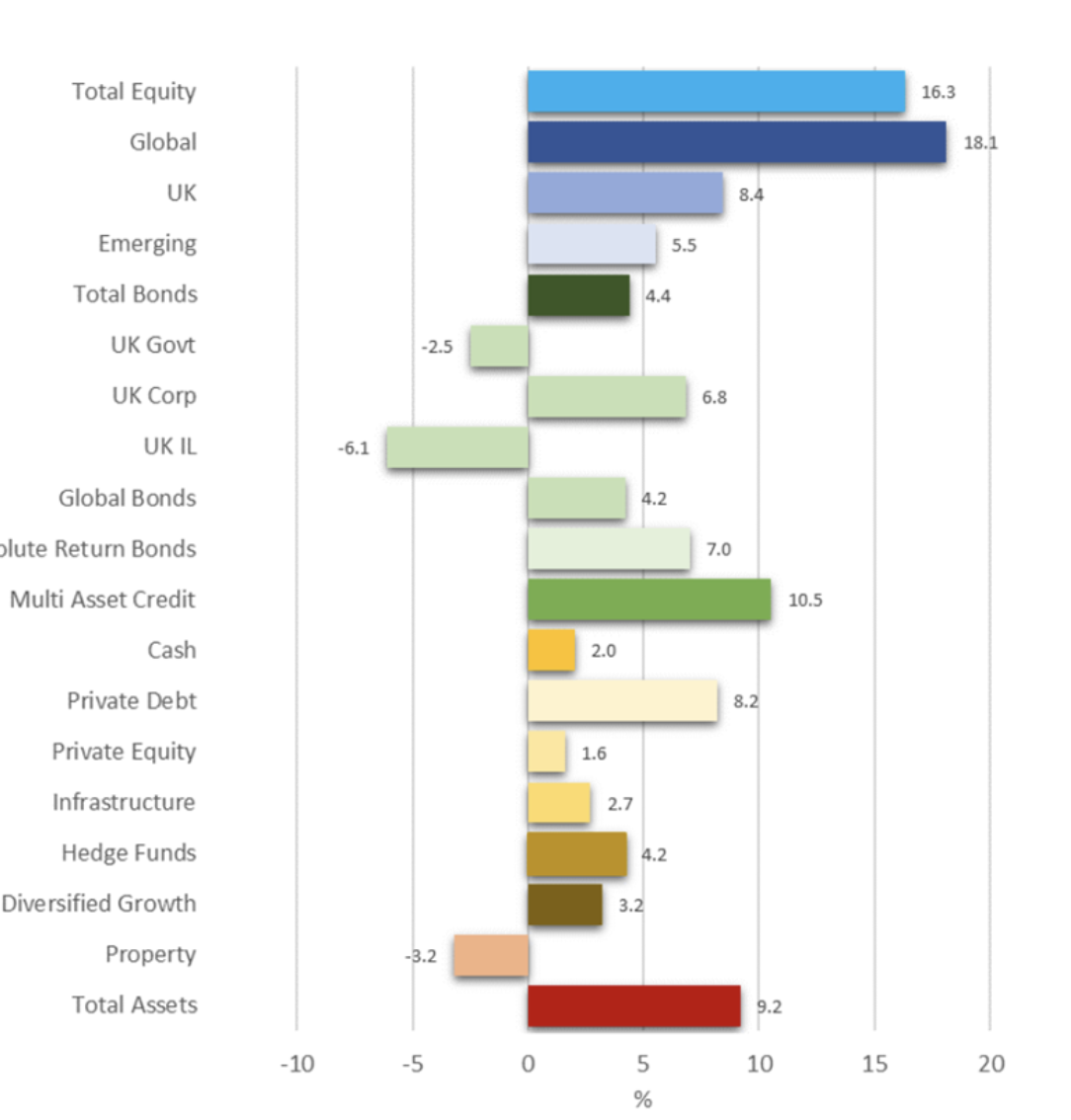 The following market commentary is taken from analysis that has been provided by Pensions & Investment Research Consultants Ltd (PIRC) in their annual review. It is based on analysis of a ‘Universe’ of 62 funds in England and Wales plus one Scottish fund (Strathclyde). These funds represent some two thirds of local authority pension fund assets and include all 8 of the Wales Pensions Partnership and the 3 Northern LGPS funds, all bar one of the London CIV funds, with funds from all other pools except LGPS Central.