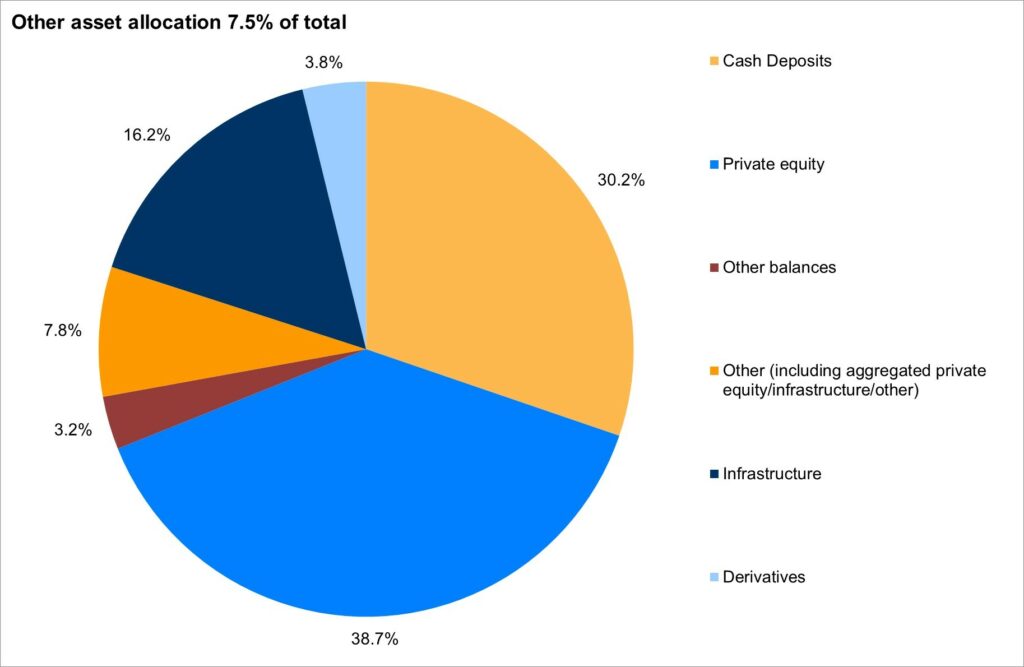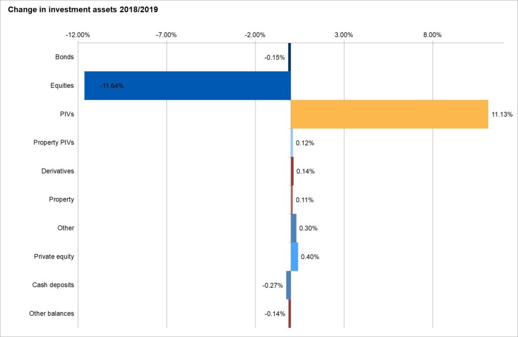 There were however a number of changes beneath that which took place during the year. These included a move into ‘green’ investments across a range of funds, a continued investment into enhanced index / smart beta investments including low volatility and an increase in the level of passive equity investment. Bond investment became more diverse as funds invested into multi-asset credit, private debt and secured property income funds. The move into pooled assets began in a significant way which meant fund manager changes were well up on average. Interestingly fund complexity continued to increase.