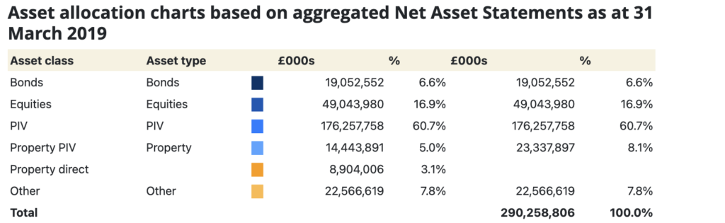 Asset allocation charts based on aggregated Net Asset Statements as at 31 March 2019